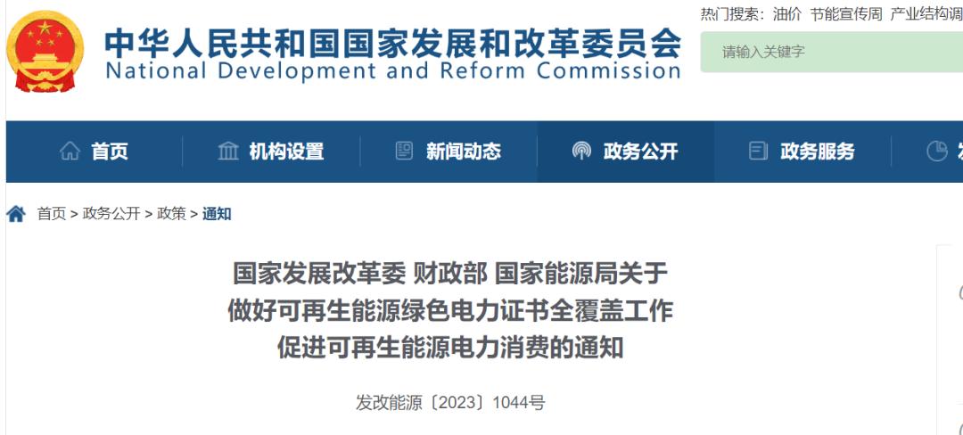 繼2022年11月,發(fā)改委發(fā)布《關(guān)于進(jìn)一步做好新增可再生能源消費(fèi)不納入能源消費(fèi)總量控制有關(guān)工作的通知》中指出生物質(zhì)發(fā)電等不納入能源消費(fèi)總量的可再生能源,可再生能源綠色電力證書(以下簡稱“綠證”)是可再生能源電力消費(fèi)的憑證