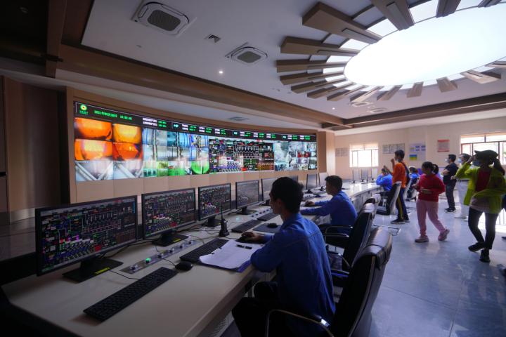 在園區(qū)的中央控制室,大屏幕上實(shí)時(shí)顯示著爐渣處理、煙氣凈化等垃圾處理的各道工序畫(huà)面,相關(guān)運(yùn)行數(shù)據(jù)實(shí)時(shí)更新。操控臺(tái)前,幾名技術(shù)人員正緊盯屏幕,遠(yuǎn)程操控和監(jiān)測(cè)各道工序流程,這里始終保持著24小時(shí)運(yùn)轉(zhuǎn)狀態(tài)。