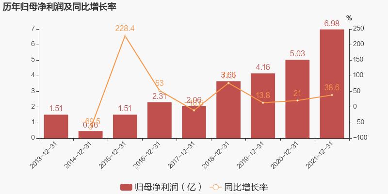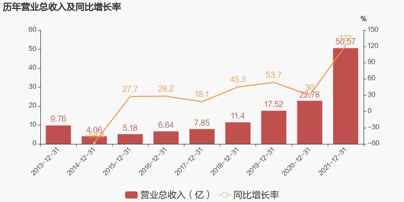 ??? 綠色動力于2022年3月30日披露年報,公司2021年實現(xiàn)營業(yè)總收入50.6億,同比增長122%,增幅創(chuàng)7年新高;實現(xiàn)歸母凈利潤7億,同比增長38.6%;每股收益為0.5元。