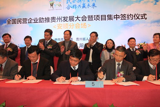 ????? 2011年12月31日,《貴州省安順市垃圾焚燒發(fā)電項目特許經(jīng)營合同》簽約儀式在貴陽市博爾曼酒店隆重舉行,綠色動力集團(tuán)運營總監(jiān)黃建中和安順市西秀區(qū)產(chǎn)業(yè)園區(qū)管理委員會主任吳端分別代表雙方在合同上簽字。綠色動力集團(tuán)運行部總經(jīng)理助理景浩,安順市市委書記陳堅、市長周建琨、西秀區(qū)區(qū)委書記羅建強、區(qū)長胡強等領(lǐng)導(dǎo)出席了簽約儀式。