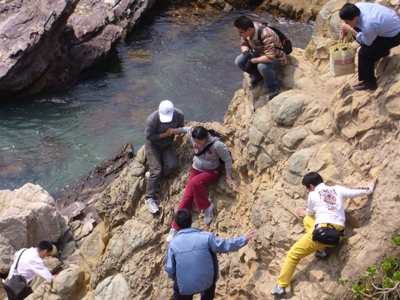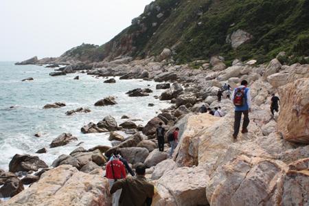 ????? 深圳東西沖海岸線是深圳最美麗、最經(jīng)典的海岸徒步線路,被《國(guó)家地理雜志》評(píng)為中國(guó)最美的十大徒步線路之一。此次活動(dòng)我們選擇的路線是從東往西沿海岸線穿越,歷經(jīng)島嶼、礁石、海蝕巖、峭壁等不同海積海蝕地貌,大部分路段都不是能正常行走的道路,很多時(shí)候需要手腳并用才能前進(jìn),而且途中沒(méi)有任何交通工具可以借助。穿越過(guò)程中,大家結(jié)伴前行,充分發(fā)揚(yáng)團(tuán)隊(duì)協(xié)作精神,互幫互助,克服了恐懼、驕陽(yáng)、饑餓、口渴、疲憊、抽筋甚至傷痛等困難,歷經(jīng)4個(gè)多小時(shí)終于到達(dá)目的地。